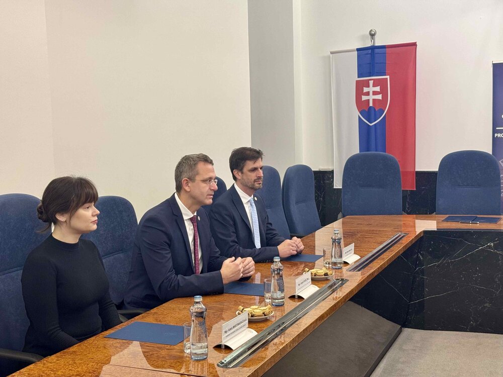 Zľava námestník generálneho prokurátora Slovenskej republiky Jozef Sedlák, generálny prokurátor Slovenskej republiky Maroš Žilinka a zástupkyňa riaditeľky Kancelárie generálneho prokurátora Slovenskej republiky Monika Holzerová