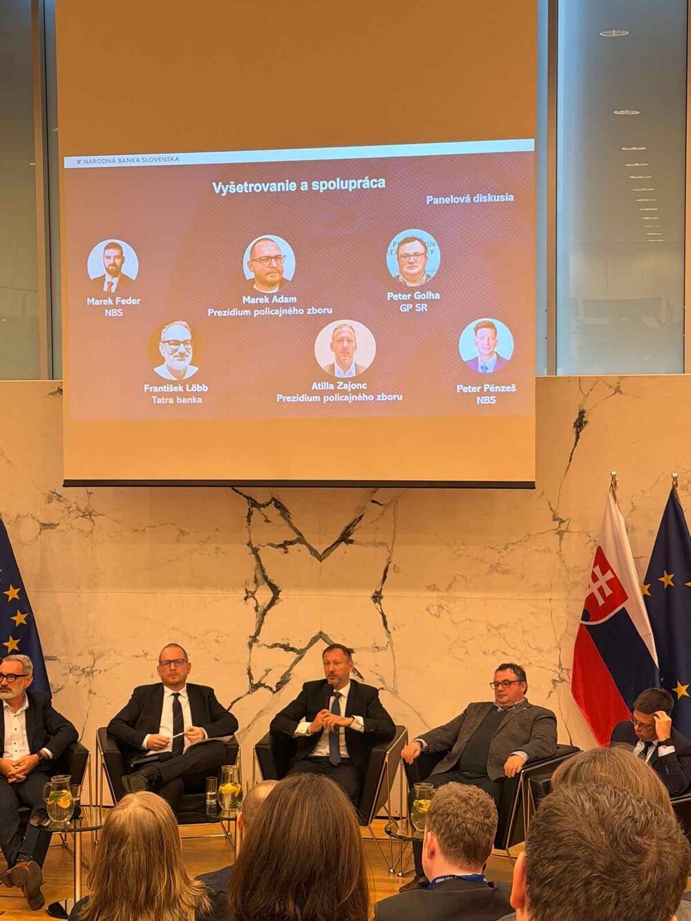 Po úvodných príhovoroch a vystúpeniach nasledovala prvá panelová diskusia k problematike vyšetrovania a spolupráce. Na tejto diskusii sa za prokuratúru zúčastnil prokurátor trestného odboru Generálnej prokuratúry Slovenskej republiky JUDr. Peter Golha. Vo svojom vystúpení a v rámci reakcií na položené otázky poukázal predovšetkým na potrebu identifikovať a zaisťovať finančné prostriedky, ktoré boli predmetom podvodného konania, najmä s cieľom ich vrátenia poškodeným subjektom. Za týmto účelom budú čoskoro do legislatívy Slovenskej republiky implikované nové zaisťovacie inštitúty, ktoré lepšie reagujú na potreby súčasnej právnej praxe.